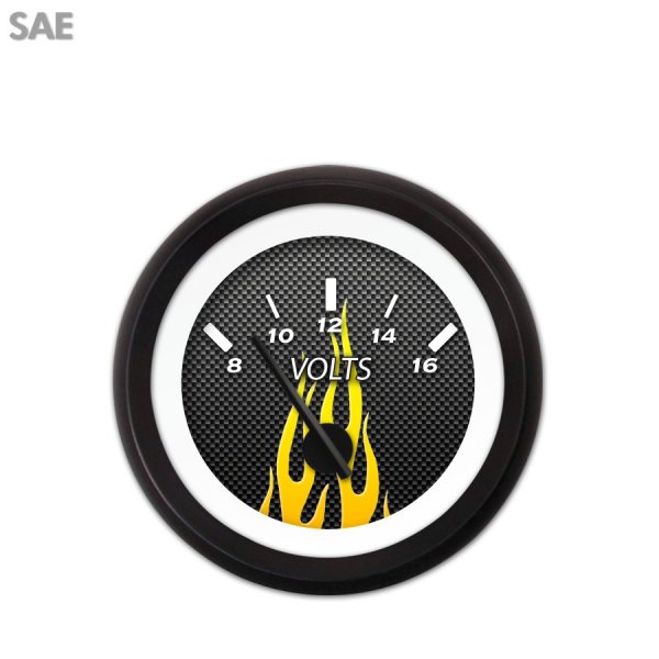 Volt Gauge - SAE Carbon Fiber Yellow Flame, Black Modern Needles, Black Trim Rings ~ Style Kit DIY Install
