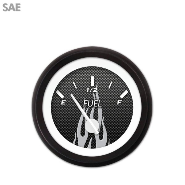 Fuel level Gauge - Carbon Fiber Gray Flame, White Modern Needles, Black Trim Rings ~ Style Kit DIY Install