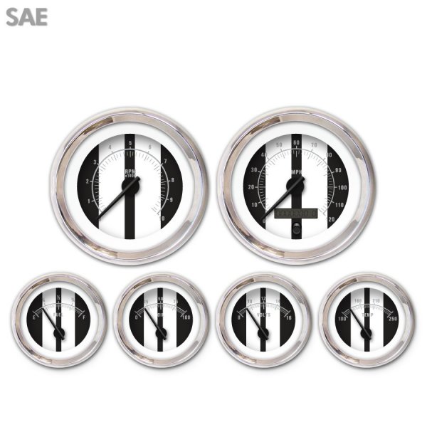 6 Gauge Set - SAE Cobra Black , Black Modern Needles, Chrome Trim Rings ~ Style Kit DIY Install