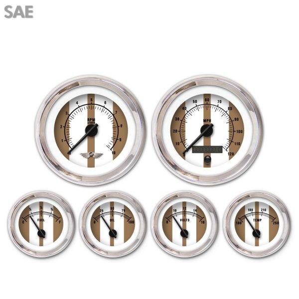 6 Gauge Set with emblem - SAE Cobra Brown , Black Modern Needles, Chrome Trim Rings ~ Style Kit DIY Install