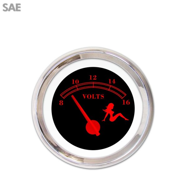 Volt Gauge - SAE Mudflap Red Text, Black, Red Modern Needles, Chrome Trim Rings ~ Style Kit DIY Install