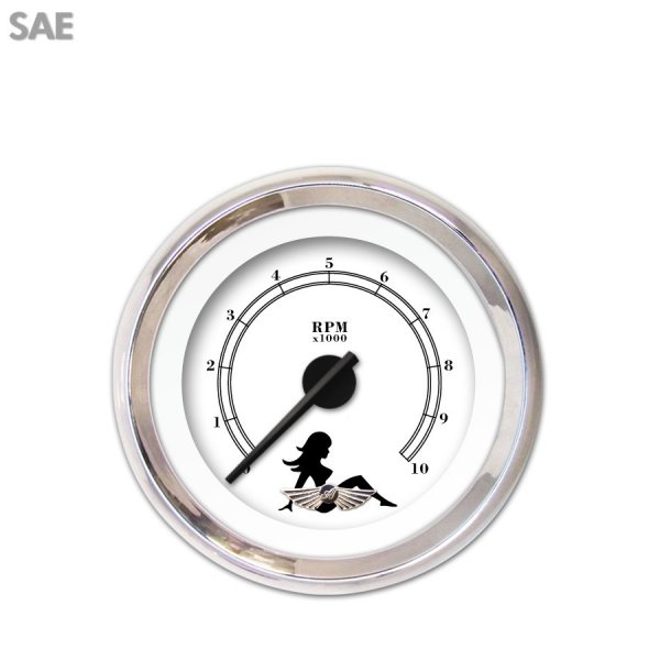 Product :: Tachometer Style :: Mudflap Series ~ Black Text, White Unit Of Measure :: Imperial Trim Ring Series :: Modern Trim Ring Color :: Chrome Needle Series :: Modern Needle Color :: Black | Emblem :: Wing Assembly :: Gauge with Face Uninstalled Tachometer Range :: 0 - 10,000 rpm Interchangeable Faces :: Yes Interchangeable Needles :: Yes Interchangeable Trim Ring :: Yes Gauge ID :: 2.25'' (56.8mm) | Gauge OD :: 3.37'' (85.7mm) Tachometer Cylinders :: Adjustable ~ Up to 12 Motor Style :: Stepper Motor Accuracy :: Industry Leading Accuracy Designed Location :: USA Support :: Toll Free Tech Support |