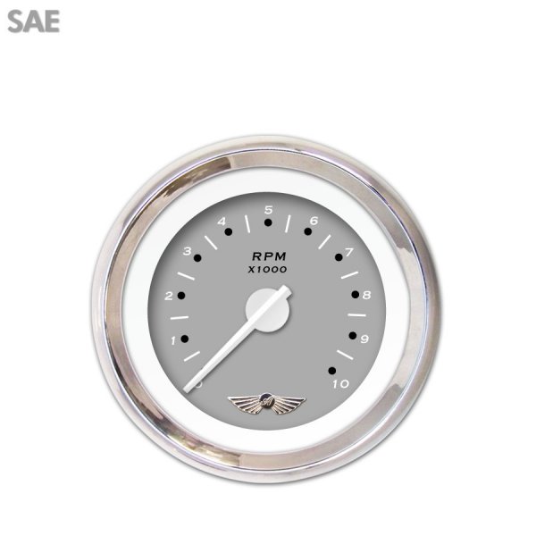 Product :: Tachometer Style :: Pegged Series ~ Gray Unit Of Measure :: Imperial Trim Ring Series :: Modern Trim Ring Color :: Chrome Needle Series :: Modern Needle Color :: White | Emblem :: Wing Assembly :: Gauge with Face Uninstalled Tachometer Range :: 0 - 10,000 rpm Interchangeable Faces :: Yes Interchangeable Needles :: Yes Interchangeable Trim Ring :: Yes Gauge ID :: 2.25'' (56.8mm) | Gauge OD :: 3.37'' (85.7mm) Tachometer Cylinders :: Adjustable ~ Up to 12 Motor Style :: Stepper Motor Accuracy :: Industry Leading Accuracy Designed Location :: USA Support :: Toll Free Tech Support |