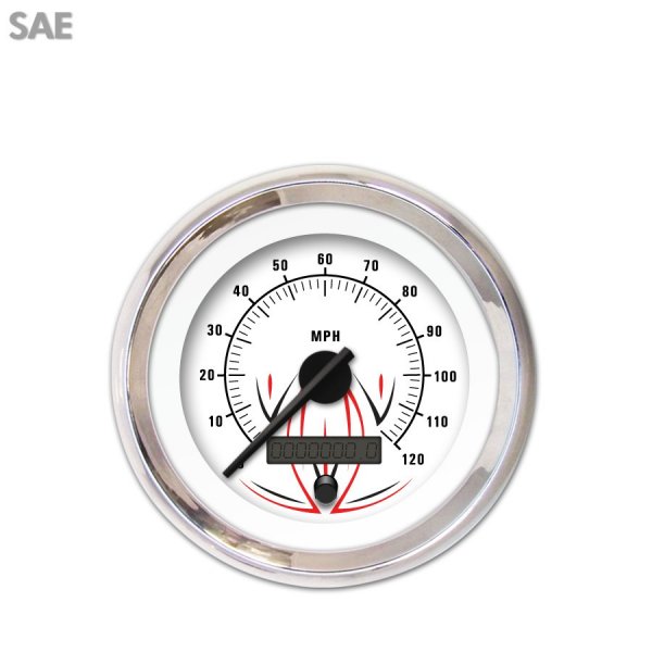Speedometer Gauge - SAE Pinstripe II White , Black Modern Needles, Chrome Trim Rings ~ Style Kit DIY Install