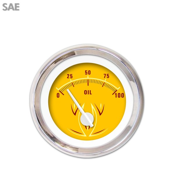Oil Pressure Gauge - SAE Pinstripe II Yellow , White Modern Needles, Chrome Trim Rings ~ Style Kit DIY Install