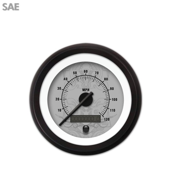 Product :: Speedometer Style :: Tribal Series ~ Gray Unit Of Measure :: Imperial Trim Ring Series :: Modern Trim Ring Color :: Black Needle Series :: Modern Needle Color :: Black Emblem :: None | Assembly :: Gauge with Face Uninstalled Speedometer Range :: 0 - 120 mph Interchangeable Faces :: Yes Interchangeable Needles :: Yes Interchangeable Trim Ring :: Yes Gauge ID :: 2.25'' (56.8mm) Gauge OD :: 3.37'' (85.7mm) Odometer :: Included | Odometer Units :: Imperial & Metric Speedo Sensor :: GM Motor Style :: Stepper Motor Accuracy :: Industry Leading Accuracy Designed Location :: USA Support :: Toll Free Tech Support |