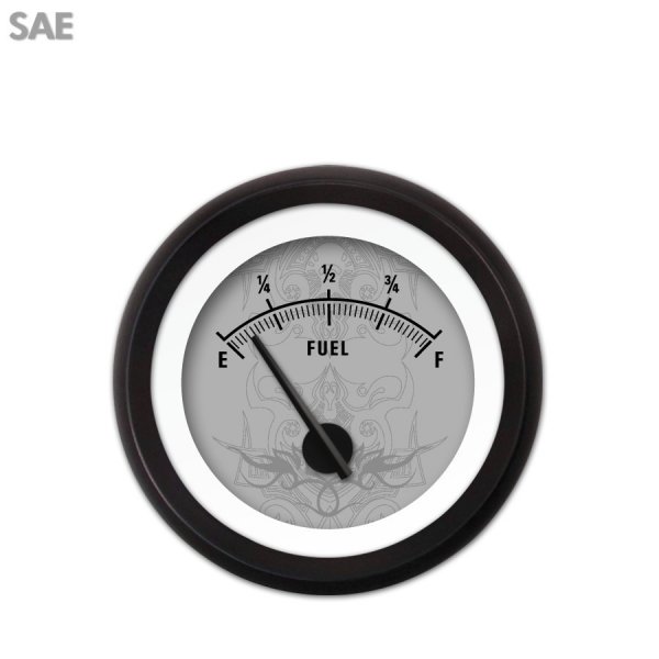 Product :: Fuel level Style :: Tribal Series ~ Gray Unit Of Measure :: Imperial Trim Ring Series :: Modern Trim Ring Color :: Black Needle Series :: Modern Needle Color :: Black Emblem :: None | Assembly :: Gauge with Face Uninstalled Fuel Level Range :: Empty - Full Interchangeable Faces :: Yes Interchangeable Needles :: Yes Interchangeable Trim Ring :: Yes Gauge ID :: 1.8'' (47mm) Gauge OD :: 2.06'' (56.4mm) OEM Sensor Compatible :: Yes | Programable Sensor :: Yes Sensor :: Included Motor Style :: Stepper Motor Accuracy :: Industry Leading Accuracy Designed Location :: USA Support :: Toll Free Tech Support |