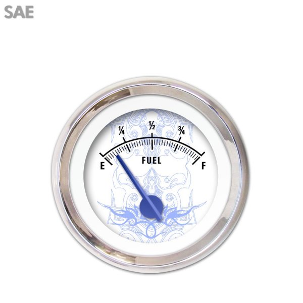 Fuel level Gauge - Tribal White , Blue Modern Needles, Chrome Trim Rings ~ Style Kit DIY Install