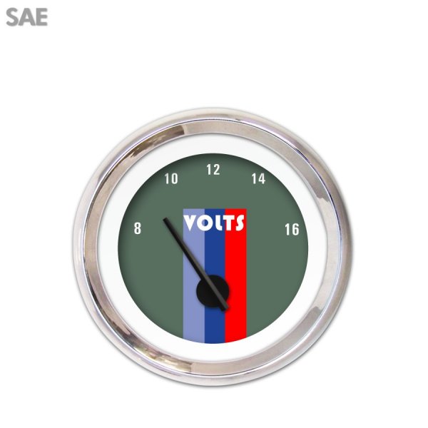 Volt Gauge - SAE Vintage Autobahn Ash , Black Modern Needles, Chrome Trim Rings ~ Style Kit DIY Install