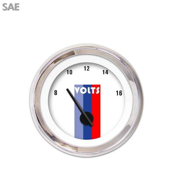 Volt Gauge - SAE Vintage Autobahn White , Black Modern Needles, Chrome Trim Rings ~ Style Kit DIY Install